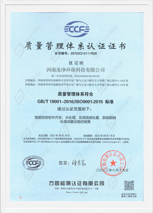 滄凈環(huán)保,是一家集科研、設(shè)計(jì),工程施工、調(diào)試于一體的智能粉體投加系統(tǒng)-國家級(jí)高新技術(shù)企業(yè)【編號(hào):GR202341000885】,旗下產(chǎn)品涵蓋水處理、危廢固廢處置,脫硫脫硝處理等領(lǐng)域,且通過ISO 9001:2015質(zhì)量管理體系認(rèn)證。